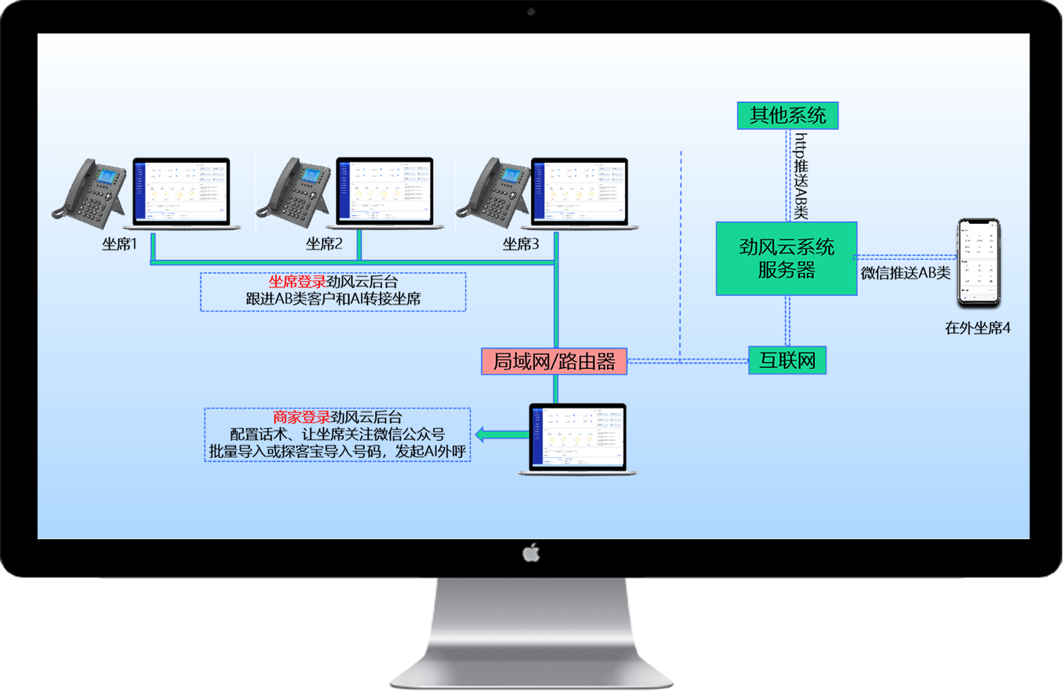 坐席微信查看AB类意向客户,或PC登录后台跟进和AI转接坐席接听
